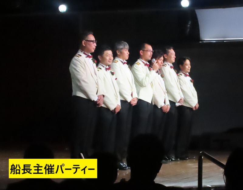 2025 ← 1 月 3日(金) → 終日航海 At. sea 気温 17℃ 20℃ 雨 18:15〜 本日のエンターテイメント キャプテンズパーティー Captain’s Party