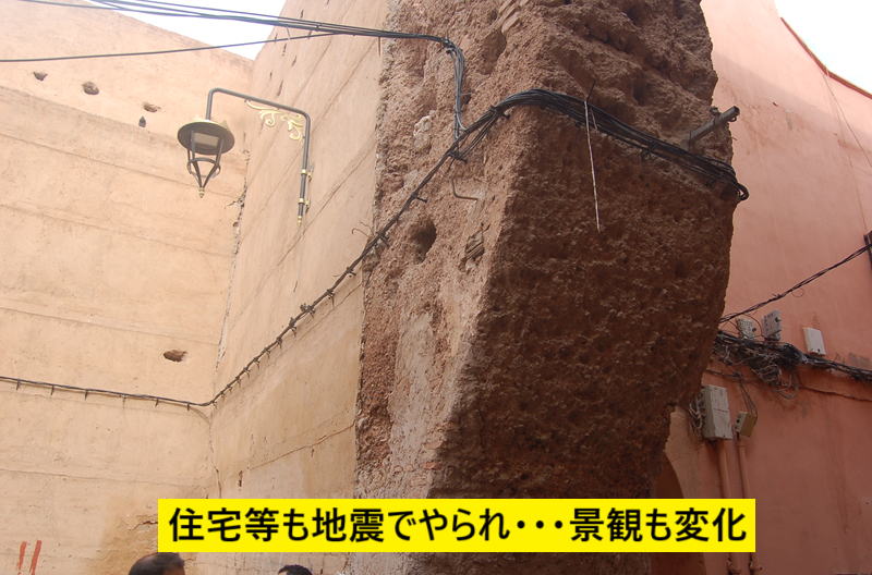 モロッコの旅中 法律で全て土葬、一般人は順番に山などに埋葬で家族の墓はない。 順番に決められたところへ埋葬され・・・全て土にかえす。 死ぬと家族も親戚も上下もなくなるという考え。 こちらも、地震でやられて修復中 右の濃紺色はこのデザイナー生み出したと 地震の影響で修復中が残念! 大道芸やへいび使いを見せているが・・・撮影は有料。 16:40カフェ前集合でホテルへもどり やっと出たてきたモロッコ料理…暗くなって撮影ピンチ! おやすみなさい 今日のひとことモロッコ最後! 表紙