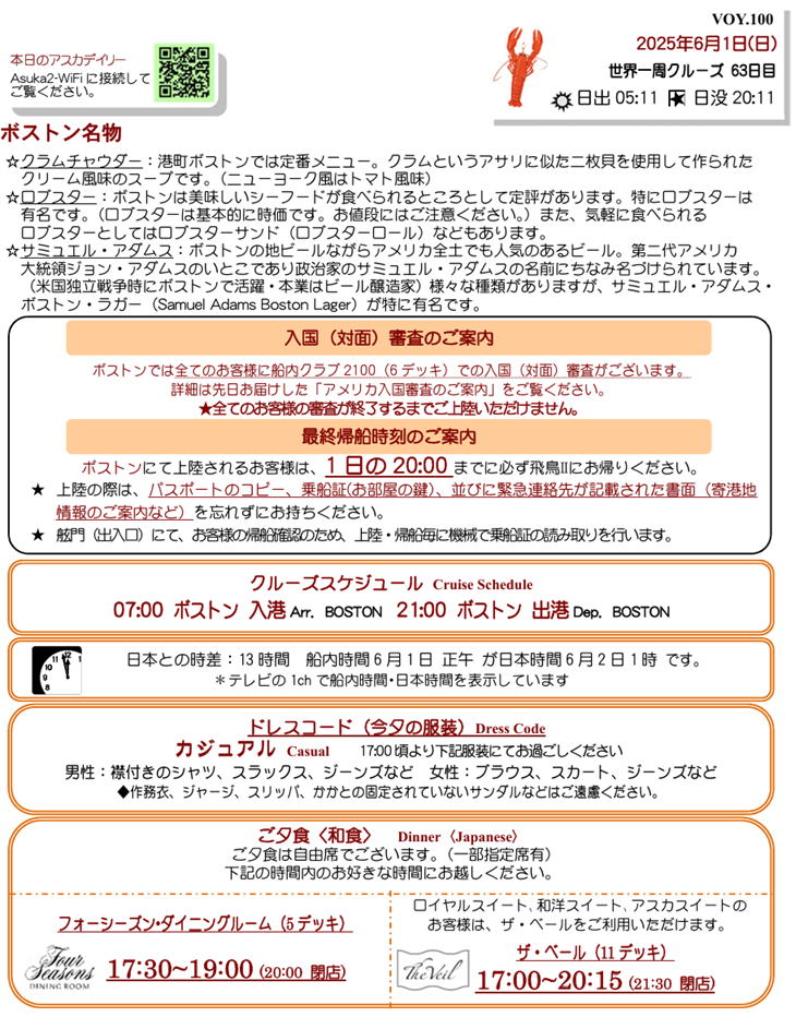 ボストン観光〜バッファロー〜ナイアガラへ 天気:曇時々晴 気温:16℃ 12℃ 夕べもけっこう揺れました。でも、湾に入ったら揺れがおさまりホッとしました。 部屋へ戻っても前の人の清掃(ハウスキープ)がされてなく 夜23時前に部屋移動…疲れましたね。 おやすみなさい。 カナダでひとこと! 表紙